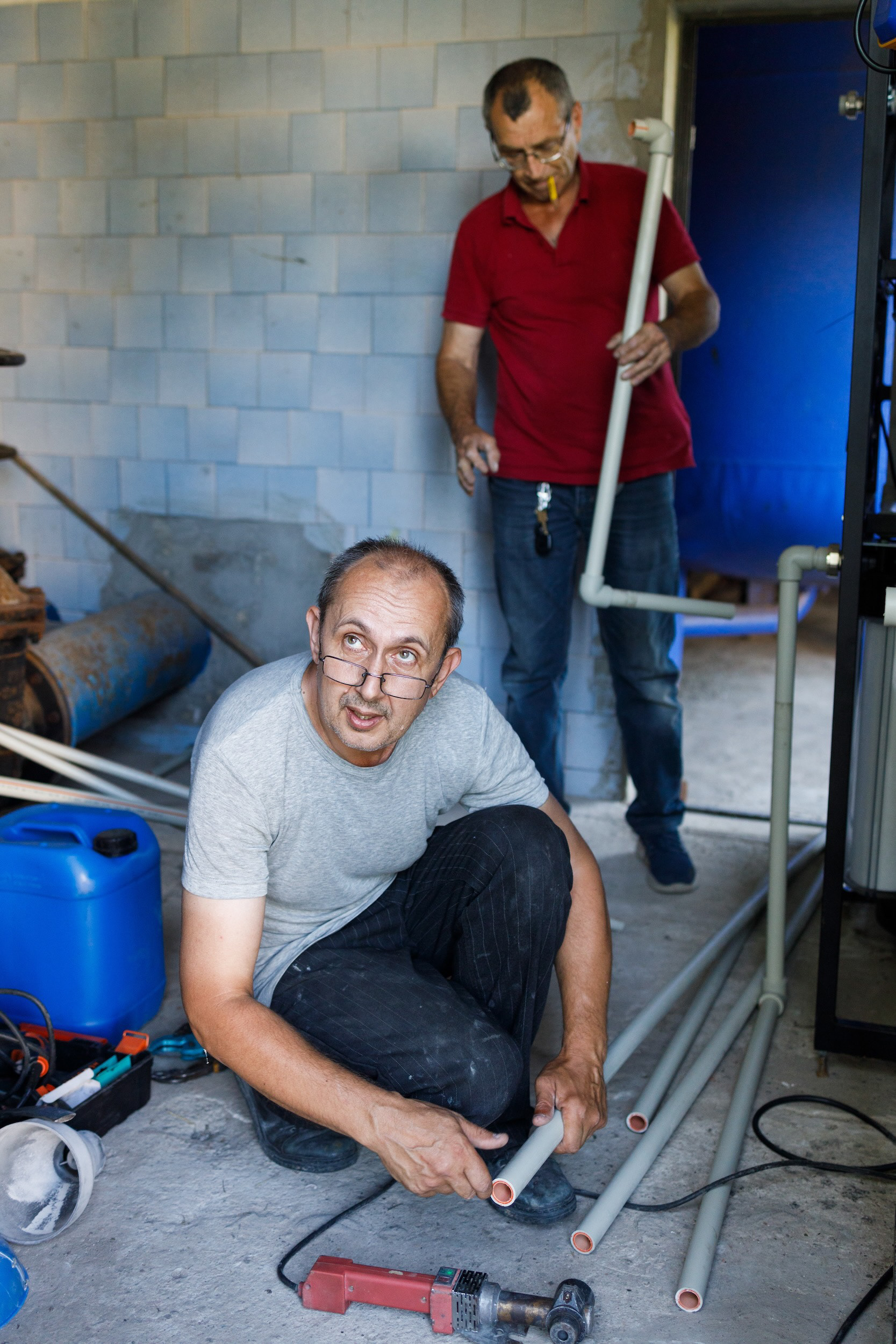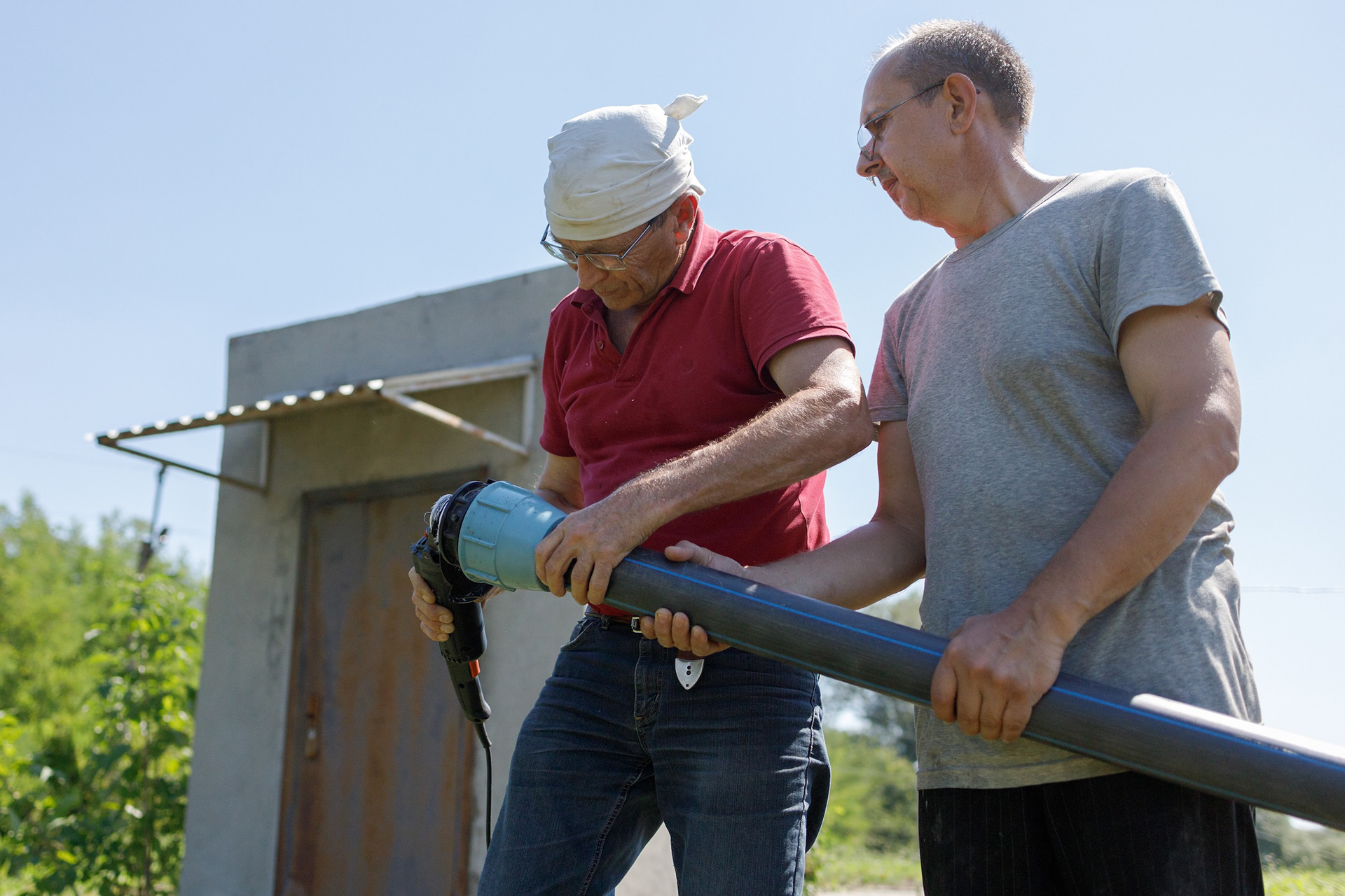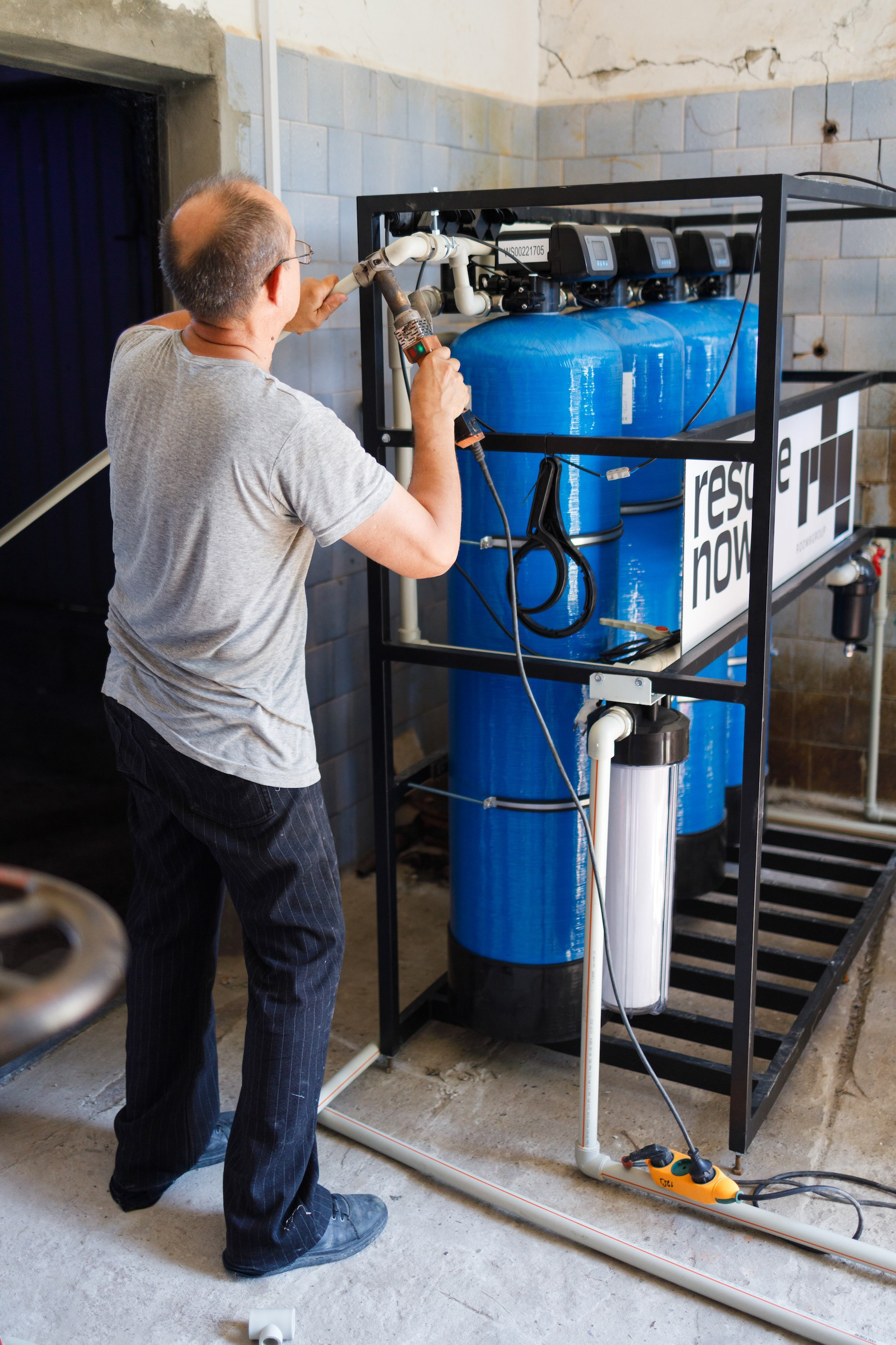 Photos of water purification systems installation by Rescue Now in Nikopol district. The area has been left without high-quality water due to terrorist act on Kakhovka Dam.